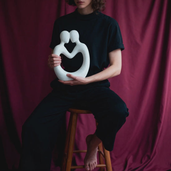 UNIO ist die stille Verkörperung von Nähe – ein Moment für die Ewigkeit, eingefangen in skulpturaler Eleganz. Zwei Figuren lehnen sich aneinander, vereint in einer Form, die Zuneigung sichtbar macht. Ihre Körper bilden einen Kreis – offen und stark zugleich. Ein Symbol für Liebe, Einheit und das Unsichtbare dazwischen.